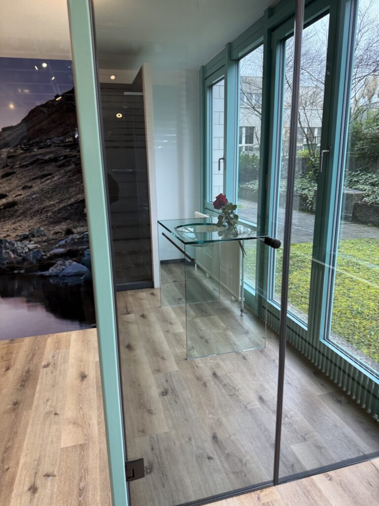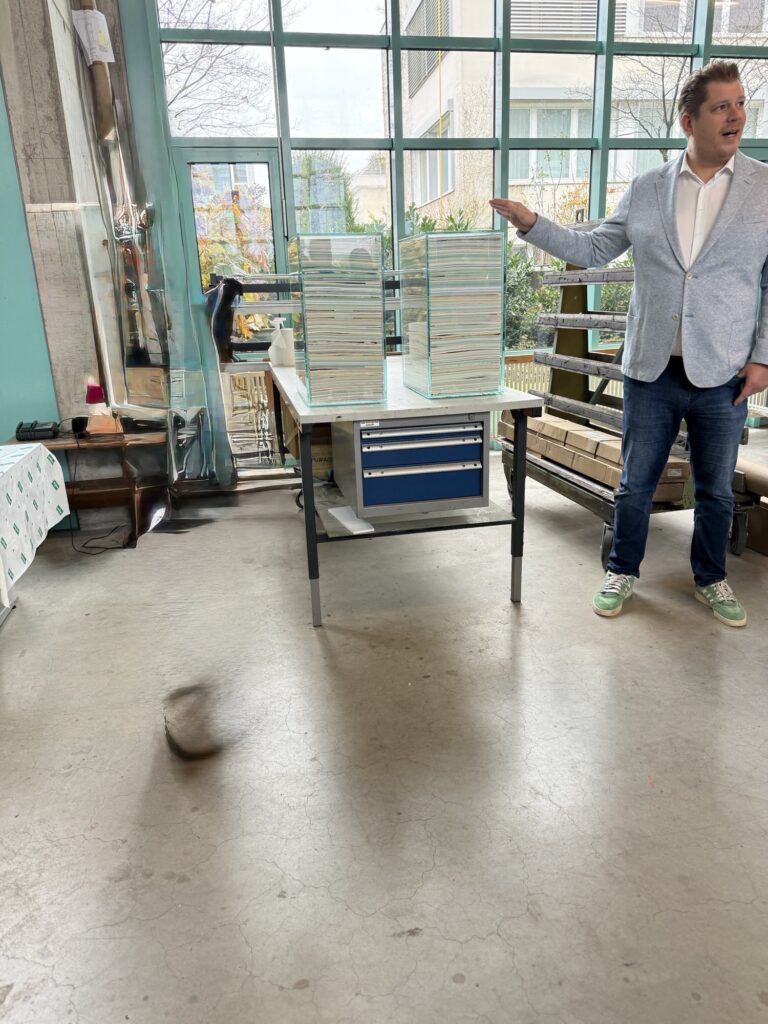 Hier werden wir vom Geschäftsführer durch die Ausstellung geführt, Wahnsinn, was mit Glas alles möglich ist.