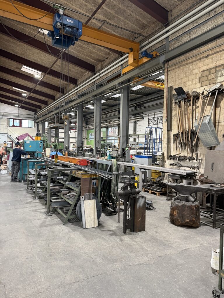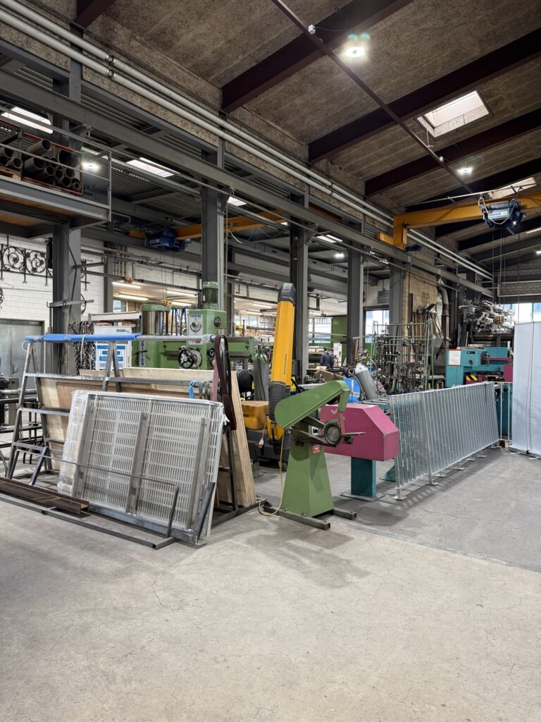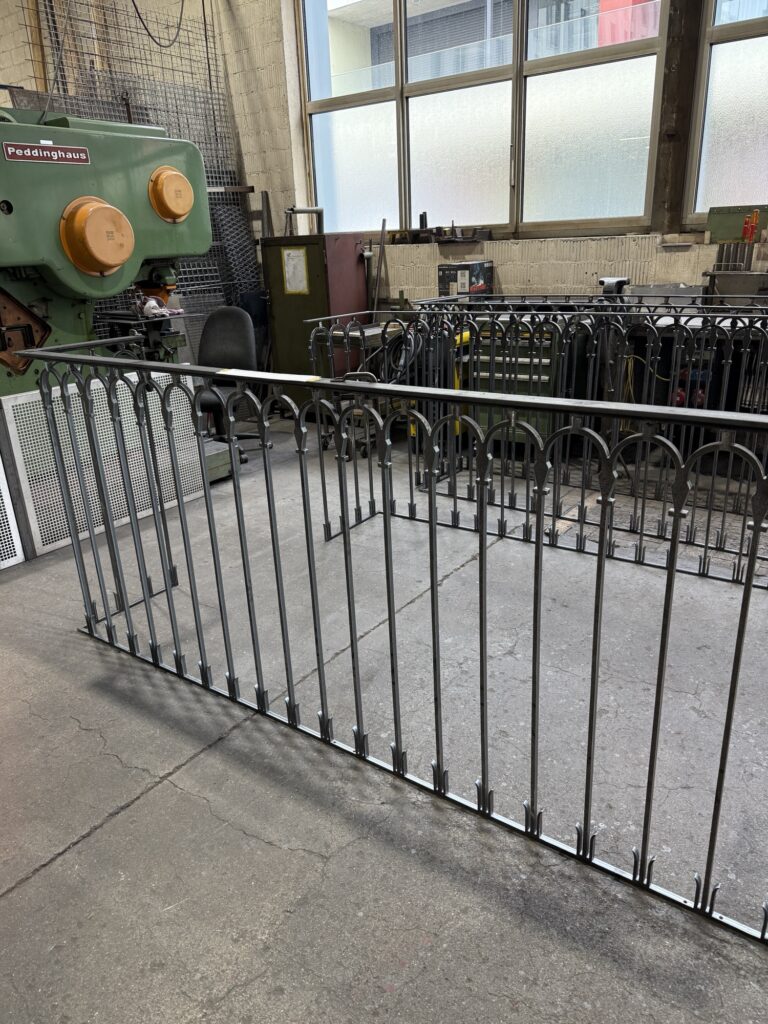 Man zeigt uns kunstvolle Eisengeländer und erklärt, wie aus lasergeschnittenem und gelöteten Einzelteilen ein wunderschönes Balkongeländer entsteht.