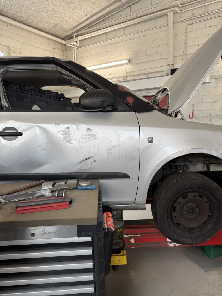 Und einen gerissenen Kotflügel mit Heissdraht zusammenschweissen. Das war mega interessant!