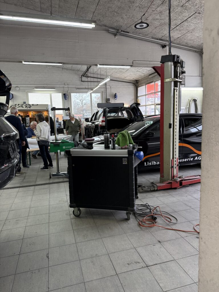 Wir legen unser Schlüsselbrett ins Auto und gehen noch zur Carosserie Lisibach.