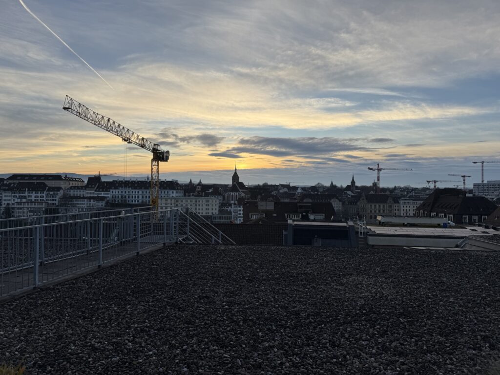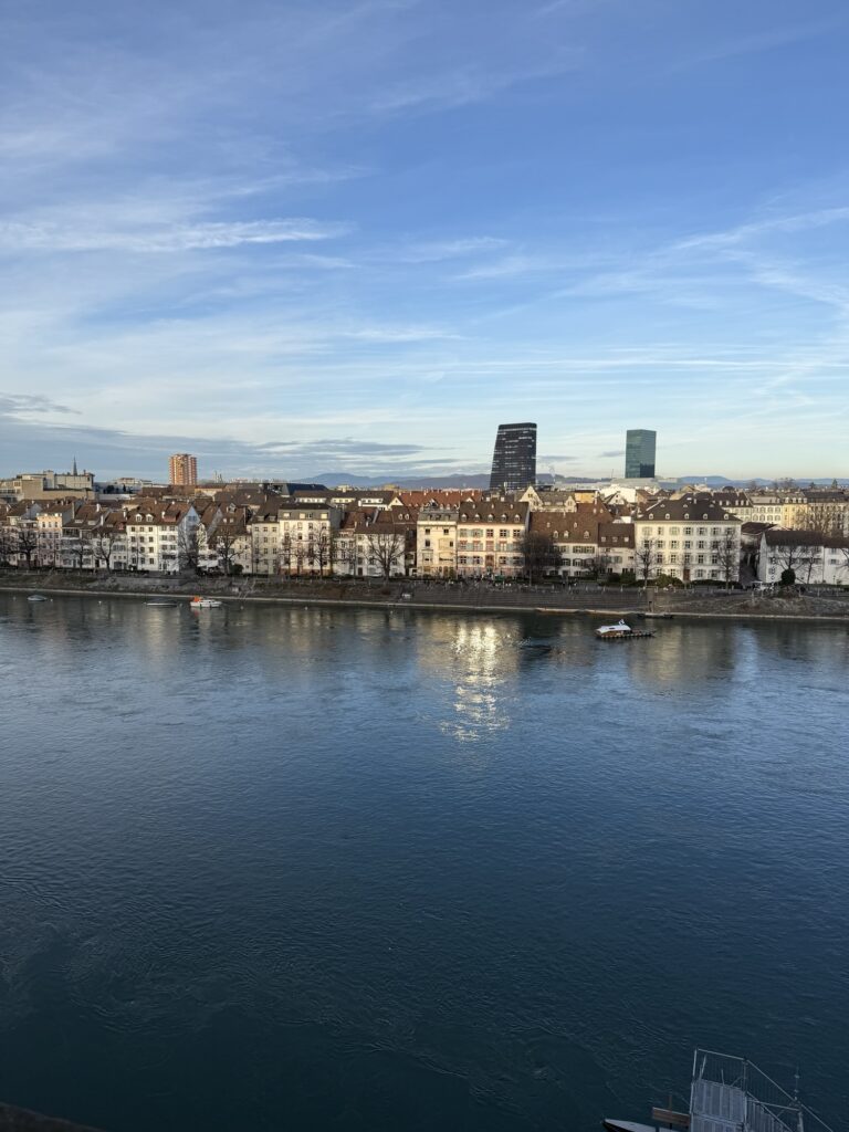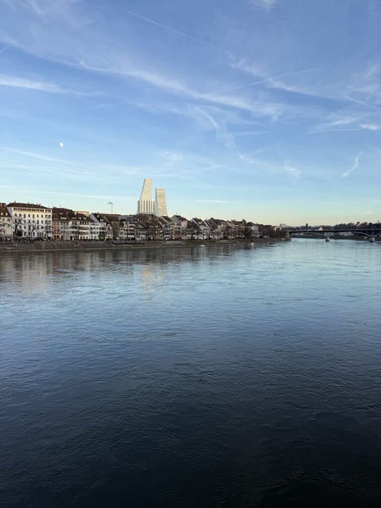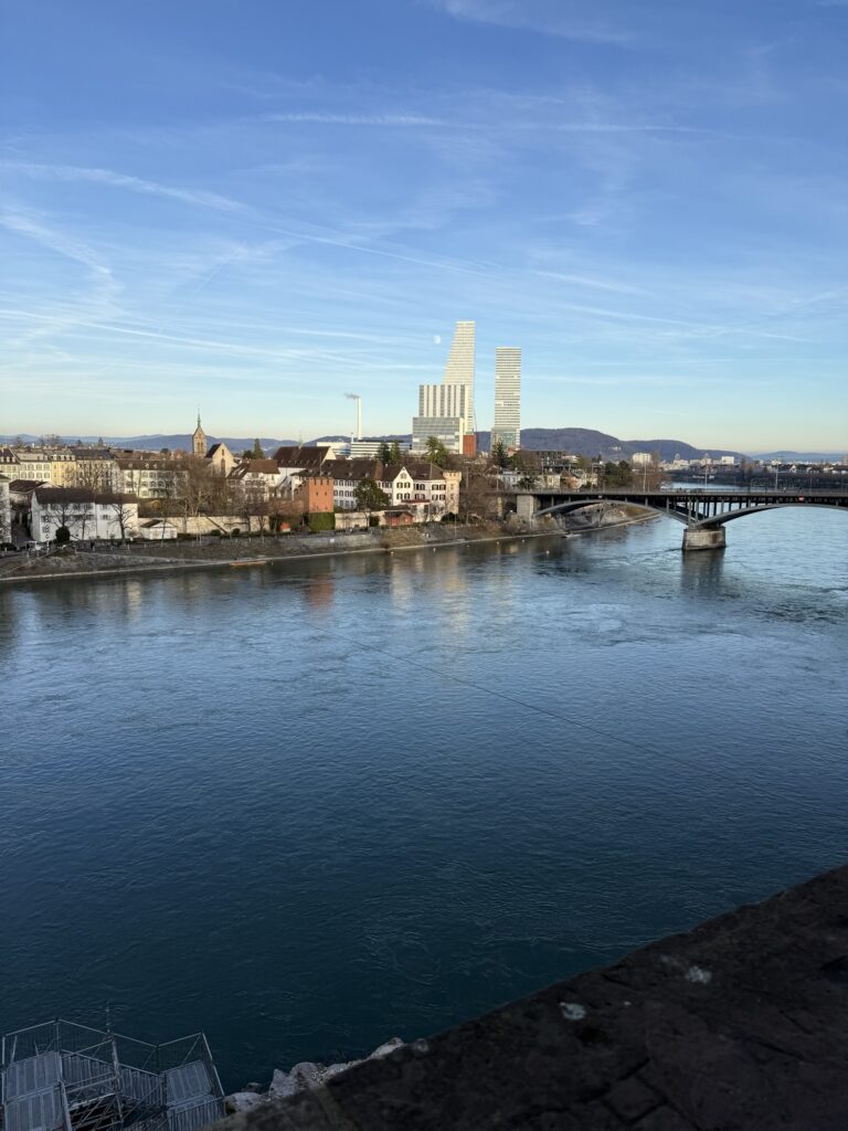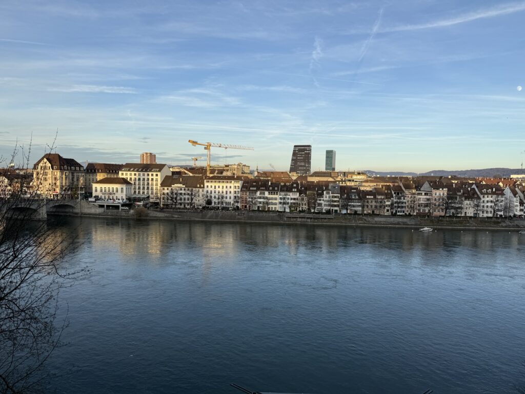 Von der Terrasse dann ein erster Blick über den Rhein nach Kleinbasel.