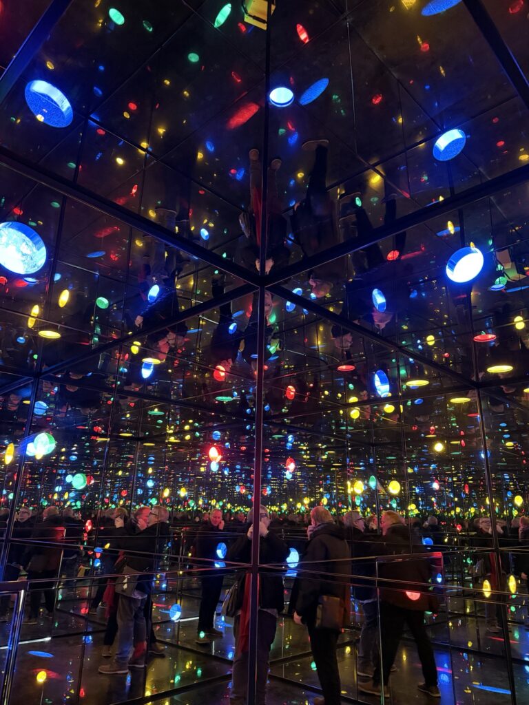Diesen Infinity Mirror Room hat sie extra für die Foundation Beyerler und die laufende Ausstellung geschaffen. Es gibt noch weitere auf der ganzen Welt.
